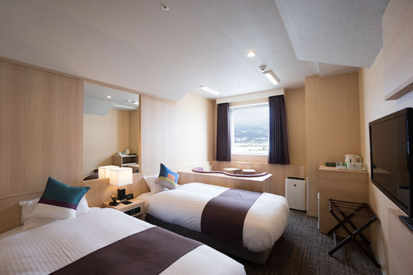 靴を脱いで、くつろげる広々スペースはまるでご自宅にいる感覚を味わえます。4名ご利用時はお布団を2組ご用意致します。